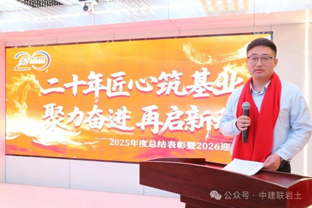1 月 16 日,公司以 “二十年匠心筑基业 聚力奋进再启新程” 为主题的 2025 年度工作总结暨表彰大会圆满举行。这不仅是对 2025 年全年工作的复盘与致敬,更是对公司自 2005 年成立以来,二十年深耕岩土勘察、测绘领域的里程碑式回望,全体员工齐聚一堂,共忆奋斗路、共话新未来。